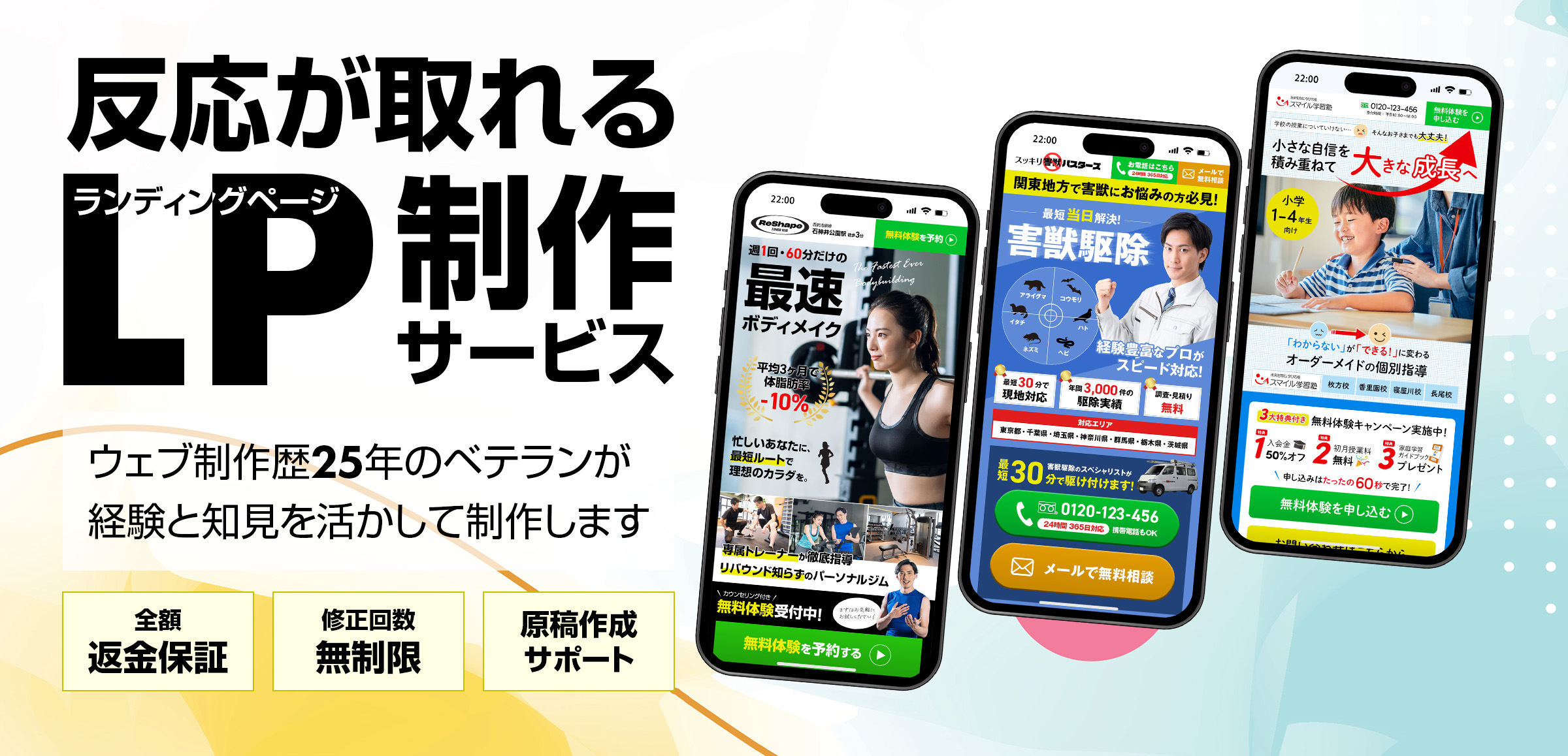 LPではページの長さにより料金が異なる業者も少なくありませんが、当サービスではそういった制限も一切設けておりません。